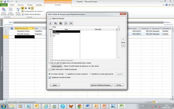 Ao executar essa ação o Project incorretamente altera alguns valores internos de algumas entidades como tarefas e calendários.